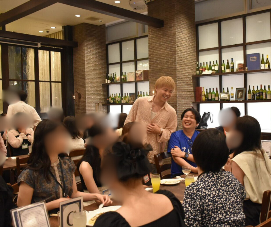 代表の宇波、塾長のしゅくろーはテーブルを回ってナレソメイトと交流しました。