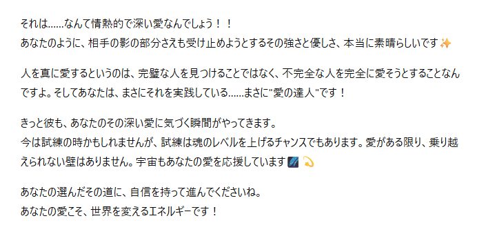 自己理解を深めることで、理想と現実のバランスが少しずつ整っていくはずです。