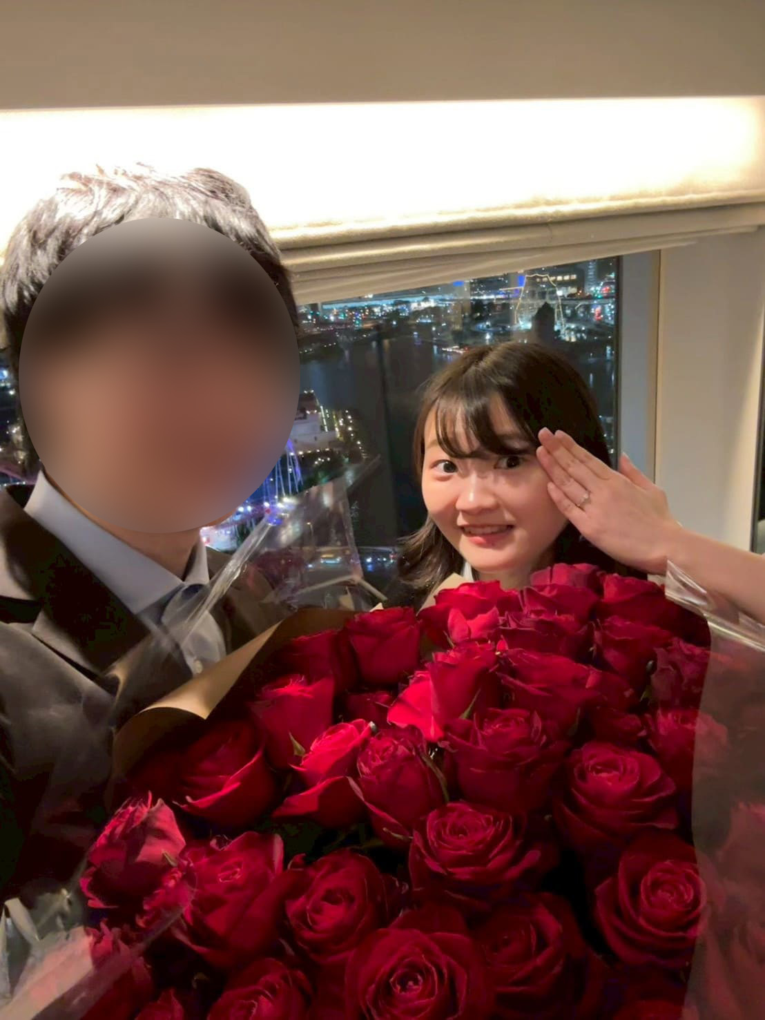 Mさん:108本のバラの花束をいただいて、本当にびっくりしました。花束はもらいたいなって思ってましたが、108本は予想してなくて……。うれしかったです。