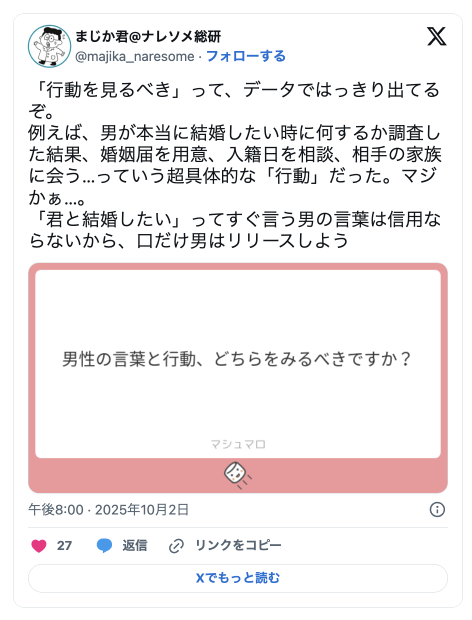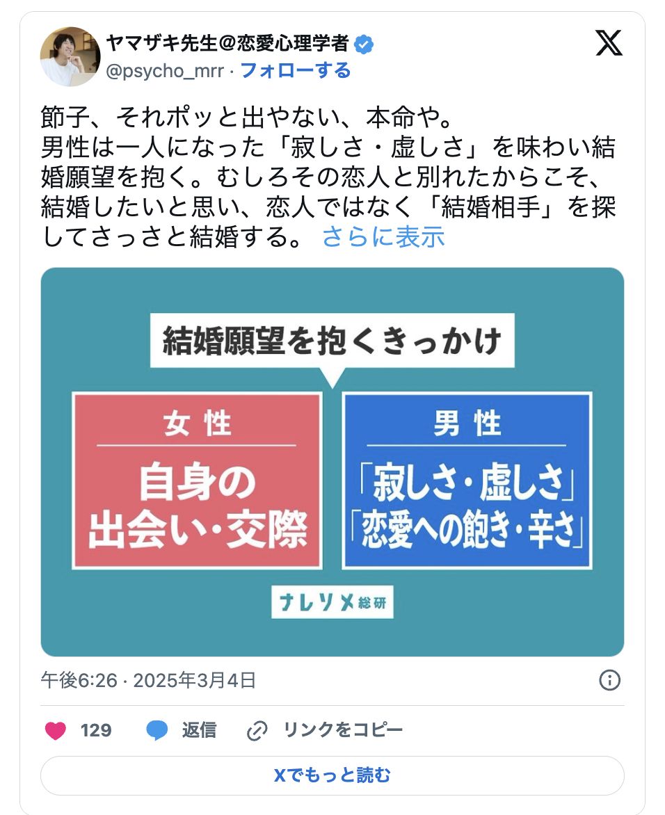 そういう女性側の態度・発言も、男性陣の結婚への経済的不安をあおっているのですよ。