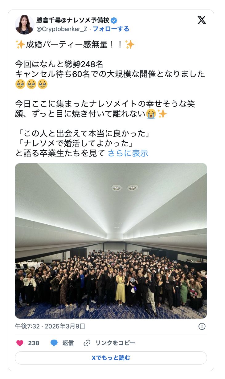 キャンセル待ちも多数出るほど大盛況!半期に一度開催の成婚パーティー