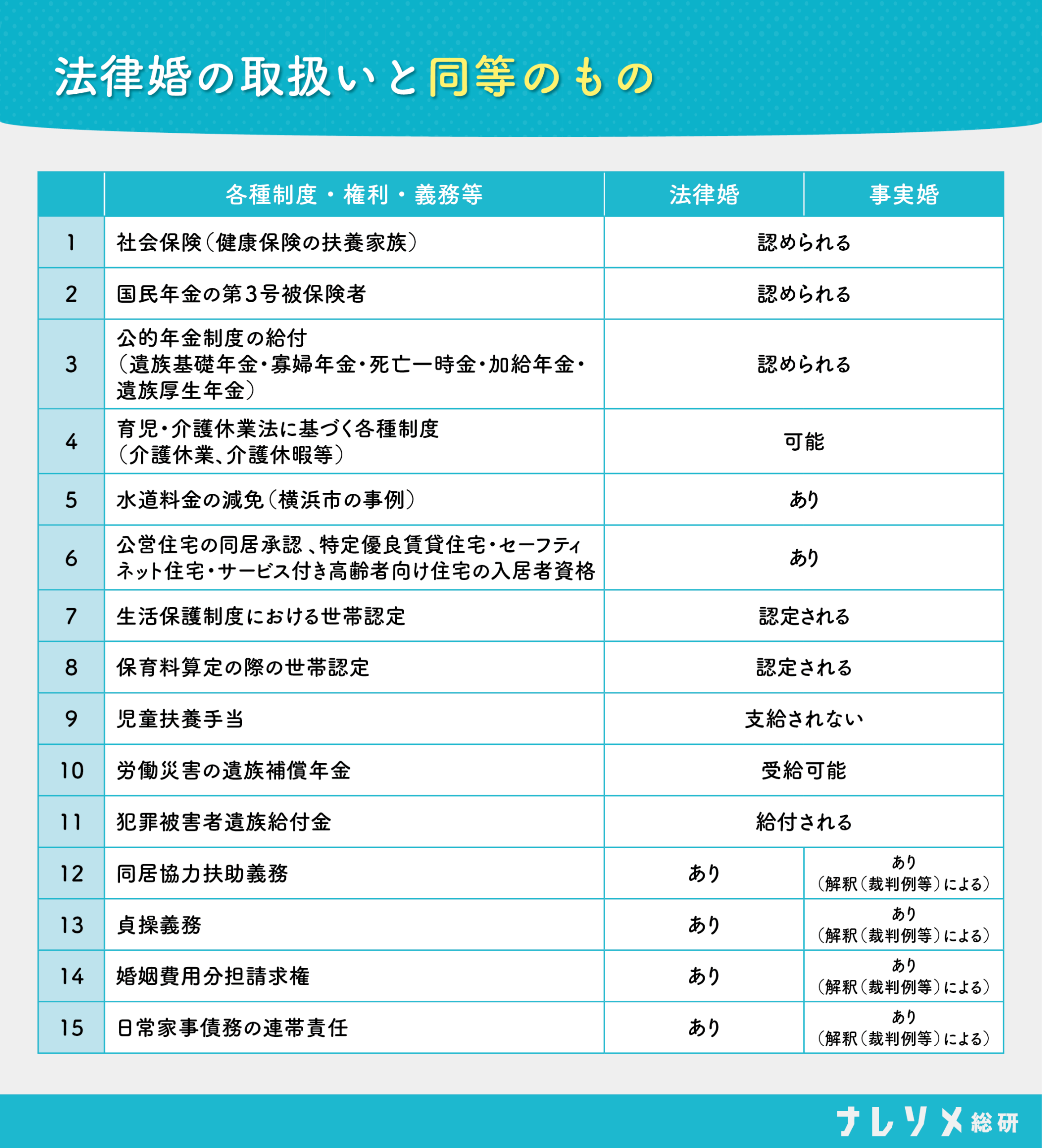 しかし、「法律婚(婚姻)」と同じように見えて、実は大きな違いやリスクも内在します。