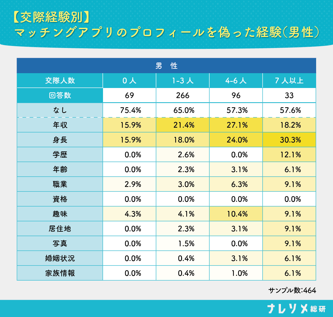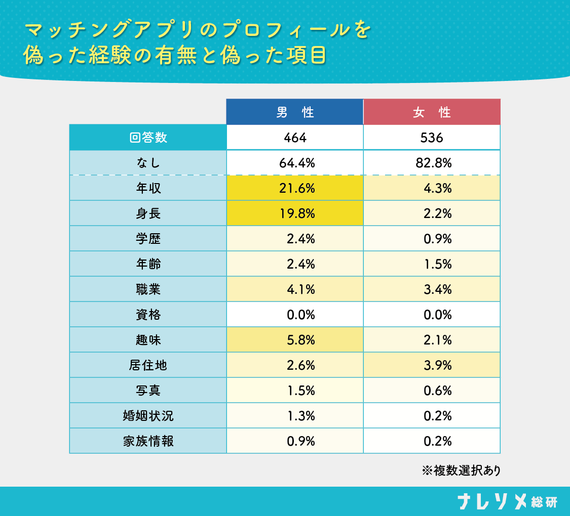 ナレソメ総研が行ったマッチングアプリの実態調査では、「ワンナイトなど気軽な出会い目的の男性、モテる男性ほどプロフィールにうそを書く」という世にも恐ろしいデータがはじき出されています。
