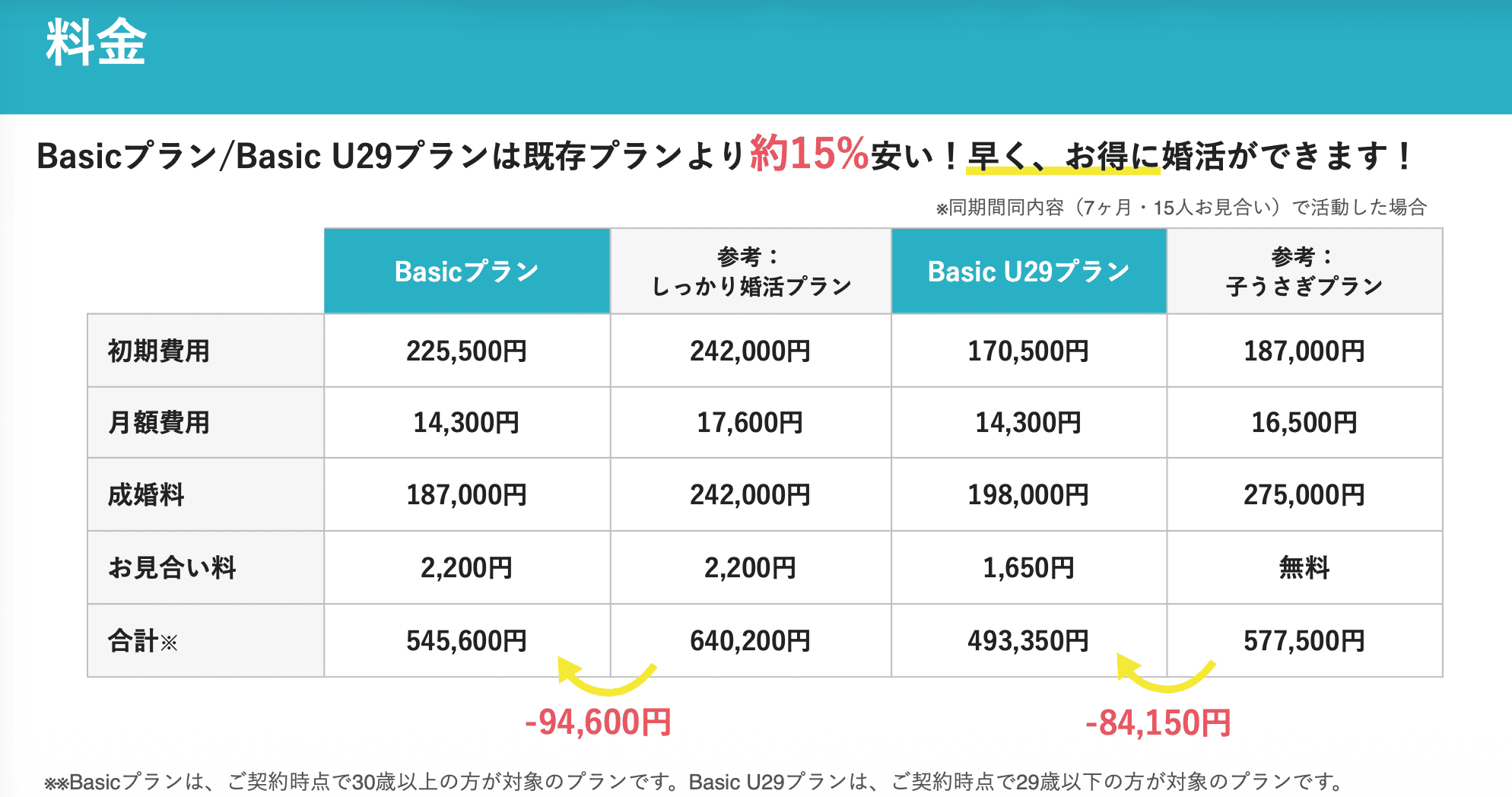 勝倉:私たちの試算では、通常プランより15%くらい安くなります。金額にして10万円弱ですね。平均成婚期間である7か月活動し、15人とお見合いした場合のトータルコストで比較してみましょう。