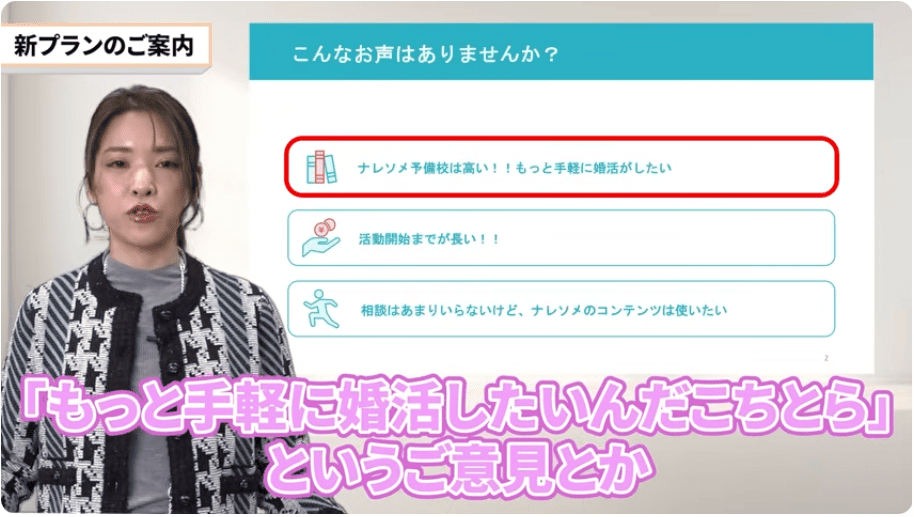 結婚相談所ナレソメ予備校から「新プラン」がリリースされた。