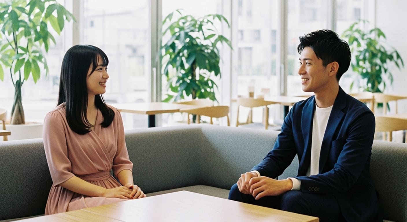 座る位置の親密度は、「対面 < L字 < 横並び」 の順に高くなります。そのため、出会ったばかりの関係では横並びは距離を詰めすぎになりやすく、逆に対面は緊張感が強くなりがちです。