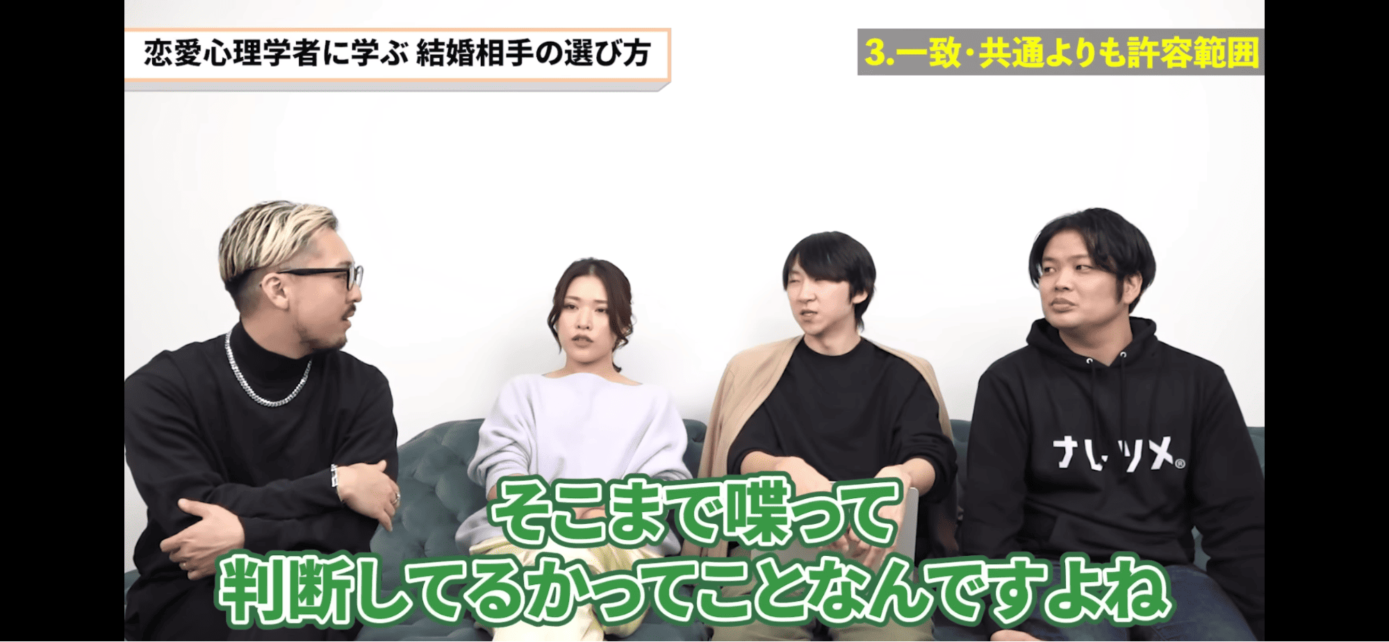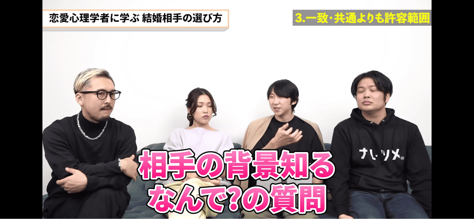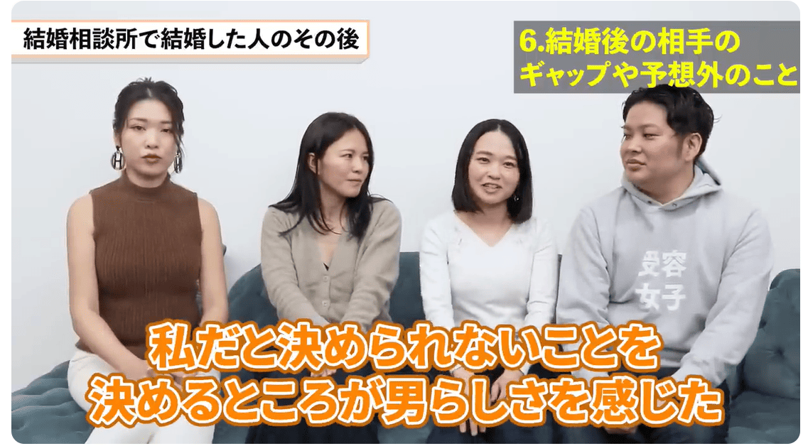 初対面であるお見合いの段階から「どこに住みたいか」「子どもは欲しいか」「共働きか専業か」について話し、さらに交際に進めば家事育児の分担や生活費の分担、義実家との付き合い方、夜の生活の希望頻度など、恋愛では避けられがちな問題にまで踏み込みます。