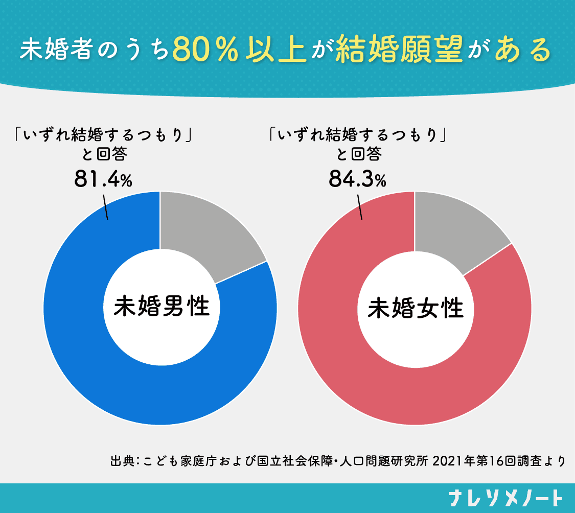 こども家庭庁が行った最新の調査によると、20代男女の約8割が結婚について「いずれ結婚するつもり」と回答しており(※2)、「恋愛はしたくないけど結婚はしたい」というギャップが浮き彫りになっています。