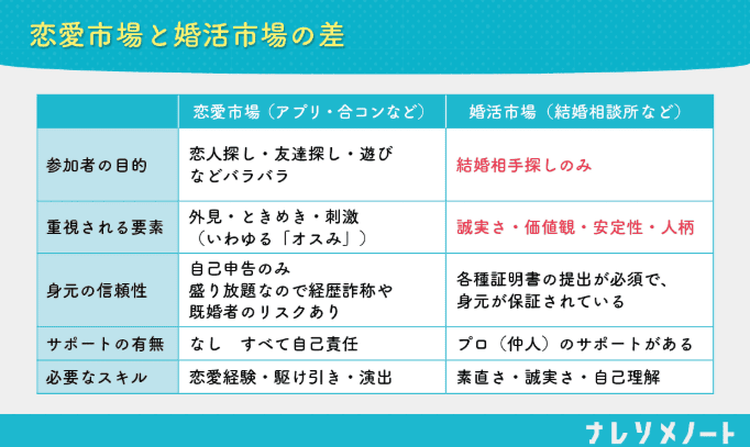 また、「恋愛市場」と「婚活市場」もまったく別のフィールドです。