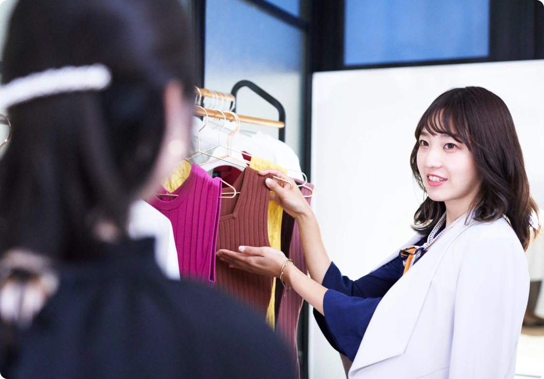 スタイリストチームは、会員様が自分らしく輝ける“第一印象”を創り出す専門部署です。ファッション・メイク・身だしなみなどのトータルスタイリングを行い、写真撮影やデートでの装いの提案を通じて自信を高めます。特にお見合い写真はその象徴であり、表情や姿勢、アイテム一つの工夫が出会いの質や成婚へとつながる重要な要素であると信じ、ファッション支援を通じてBest marriageを追求していきます。